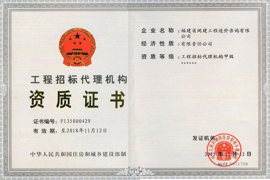 福建省閩建工程造價(jià)咨詢有限公司成立于1993年,原隸屬福建省建設(shè)委員會(huì),2001年脫鉤改制為有限責(zé)任公司,公司注冊(cè)資本1200萬元,是一家具有甲級(jí)工程招標(biāo)代理資質(zhì)(證書編號(hào):F135000429)、甲級(jí)工程造價(jià)咨詢資質(zhì)(證書編號(hào):甲150135000084)、政府采購(gòu)代理資質(zhì)、預(yù)備級(jí)中央投資項(xiàng)目招標(biāo)代理機(jī)構(gòu)資質(zhì)(證書編號(hào):ZYTZ-C2013239)、丙級(jí)工程資質(zhì)(證書編號(hào):工咨丙11520160008)的綜合性工程咨詢服務(wù)單位。能承擔(dān)各類建設(shè)項(xiàng)目的工程招標(biāo)代理、工程造價(jià)咨詢...
